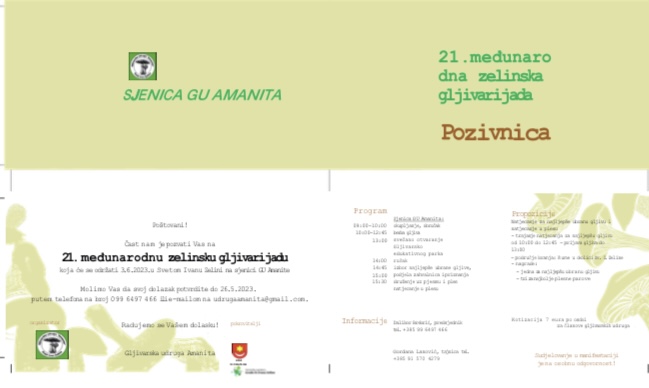 šaljem vam pozivnicu za 21. Zelinsku gljivarijadu 3.6.2023.g.